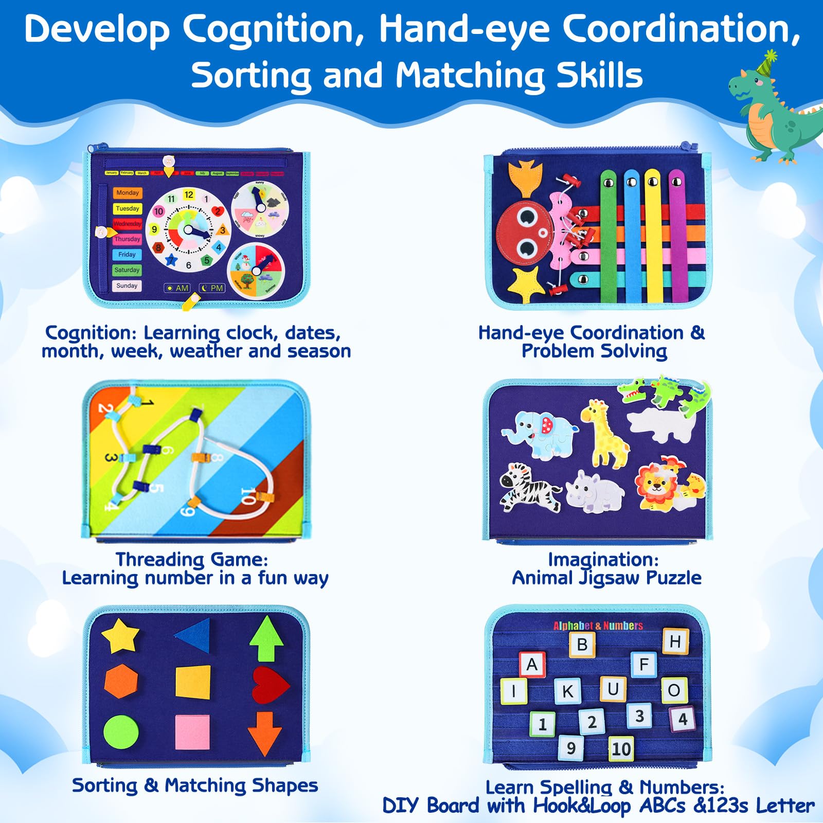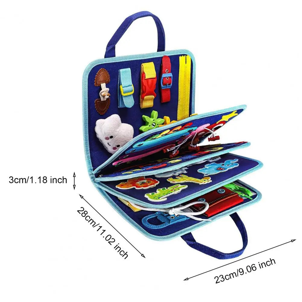 Ce Busy Board combine des compétences pratiques de vie avec l'éducation préscolaire et couvre tous les domaines du développement cognitif :